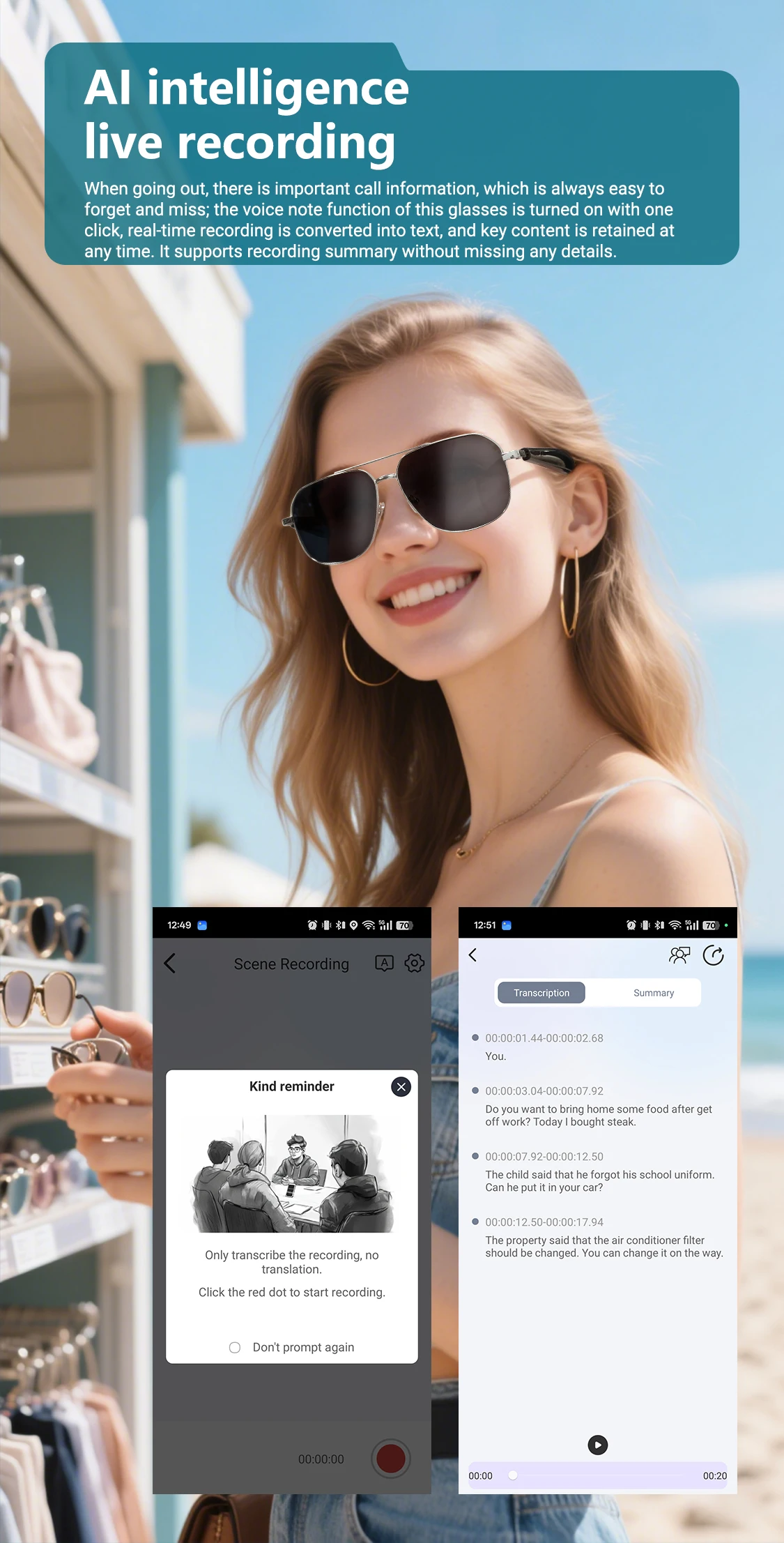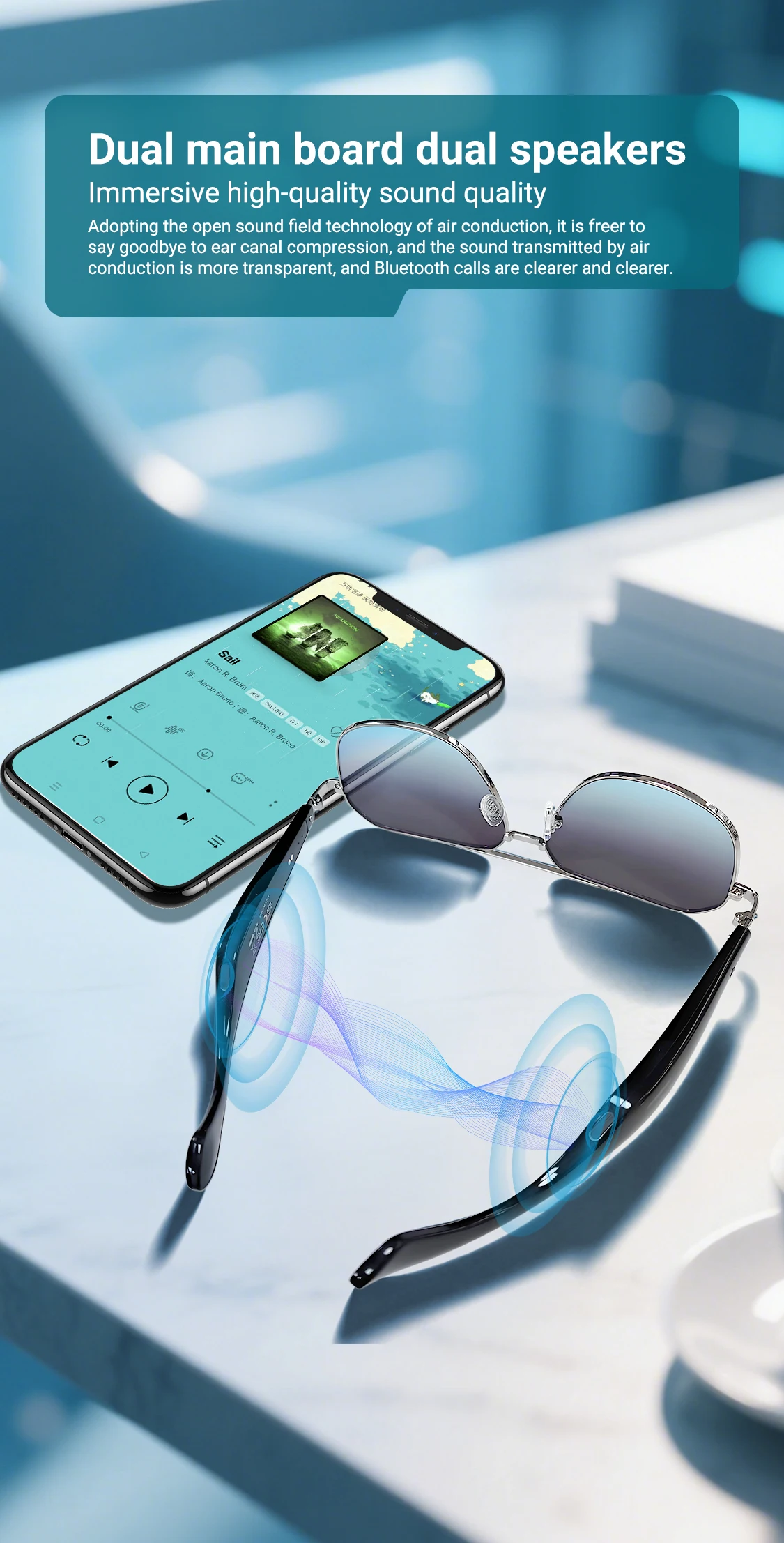 AI Smart Translate Eyeglasses UV Protect Bluetooth Call Voice Assistant Receive Call Listen Songs Remote Camera Smart Glasses