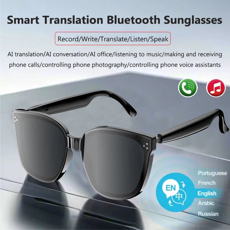 Men Women AI Smart Glasses Intelligent Real-time Language Translator Bluetooth Wireless Headphone AI Chat Driving Sunglasses